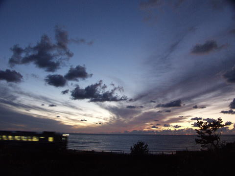 このカーブを描く海岸線に張り付いて延々進む五能線、シケるとすぐ列車が遅れます。