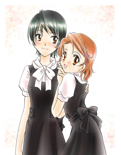紗理&薫 桜井家かな様よりいただきました。 (いただいたのはかなり前だったのですが とんと更新できてなかったもので) 何で描いていただけたのか、 それは壮絶なオトナの交渉の結果…(笑) 紗理ちゃんをかなさん絵で見てみたいと 密かに思っていたのでウハウハです。 また描いてくださいね♪ …変な髪型ばっかですいません(苦笑) 2005.4.27