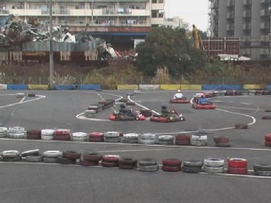 ←1コーナー立ち上がりで並びかけるセリカ氏(奥に見える三十路R氏はブっちぎり)