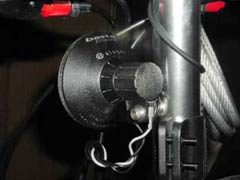 標準の取り付け用バンドが角パイプ状のフォークにうまく付かないように見えたことと、