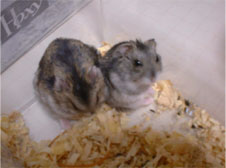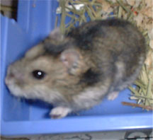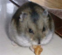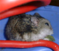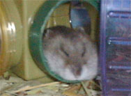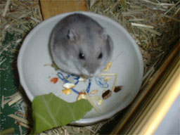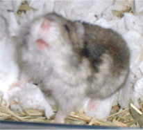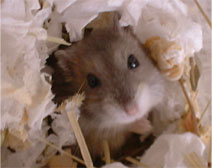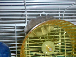 | みうの寝床の掃除をしたらやっぱり気に入らないらしく、巣材に入れてあげたティッシュと綿をほお袋に詰め込んで、えさ皿まで来て綿を出したものの、なんかおかしいと気づいたのか再び詰め込んでました。おかげで綿やティッシュはみうの唾液で濡れてる(笑)のに匂いがついて満足したのか元の寝床に戻って巣をつくり直してました。時間にして約30分。ご苦労様でした(^-^)。いつも痩せ痩せのみうだけどしばし含み綿をしたふっくらした顔を見つめてたけど、やっぱり丸っこい方がかわいいなぁ。 |