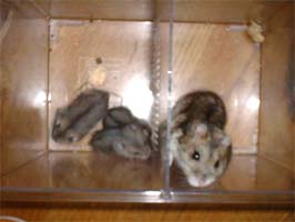 そのあとも子ハムに手当たりしだい襲い掛かり、子ハムは逃げ回ってました。