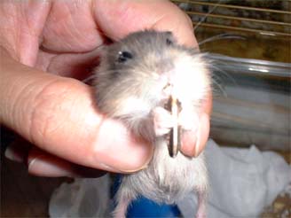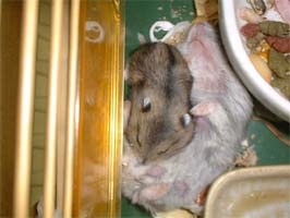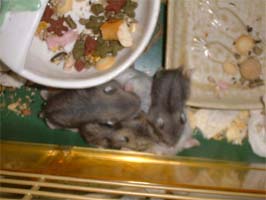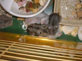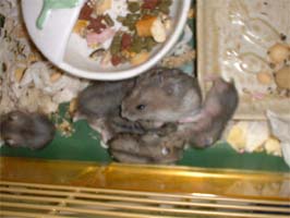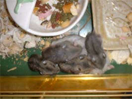 寝ているめるママの上に1匹の子ハムが来て お乳を飲んでると・・・。 |