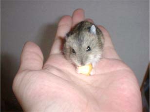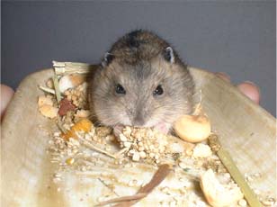かわいい顔して食べてたので、 お皿ごと持ってみました。 いっちょまえに頬袋つかってます。 「粟の穂」が大好き。 |
