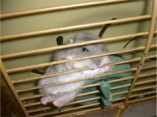 ケージに手を差出すと、2匹同時に しがみついてきたので、そのまま出してみた。 この2匹は6匹のなかでも早くに なついていて くれています。 |