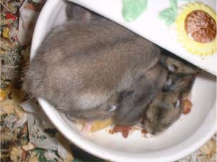 めるのえさ皿なので、割り込んできました。 子ハム踏んでます(苦笑) |