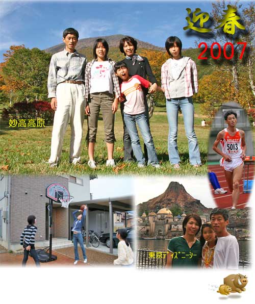 ・子供達は全員大学生で、仙台、東京、松本。 ・芳 北陸産業活性化センターは3年目。韓国に行きました。 記録は5'02.28 10'44.14 18'29.25 37'52 金沢マラソン3:04'17 hole in oneして大騒ぎ、84の自己ベストも出ました。 ・久 広島、北海道、伊勢、沢山旅行しました。 ・実 卒業設計で大忙し。 ・結 仙台と戸田を往復。国体出場しました。 ・咲 大学のサークルは、りんご部隊で農家のお手伝い ・みかん ただ今、ダイエット中!! |