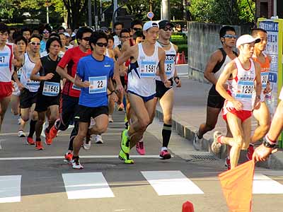 鱗町交差点過ぎて 4kmぐらい 先頭集団三輪他
