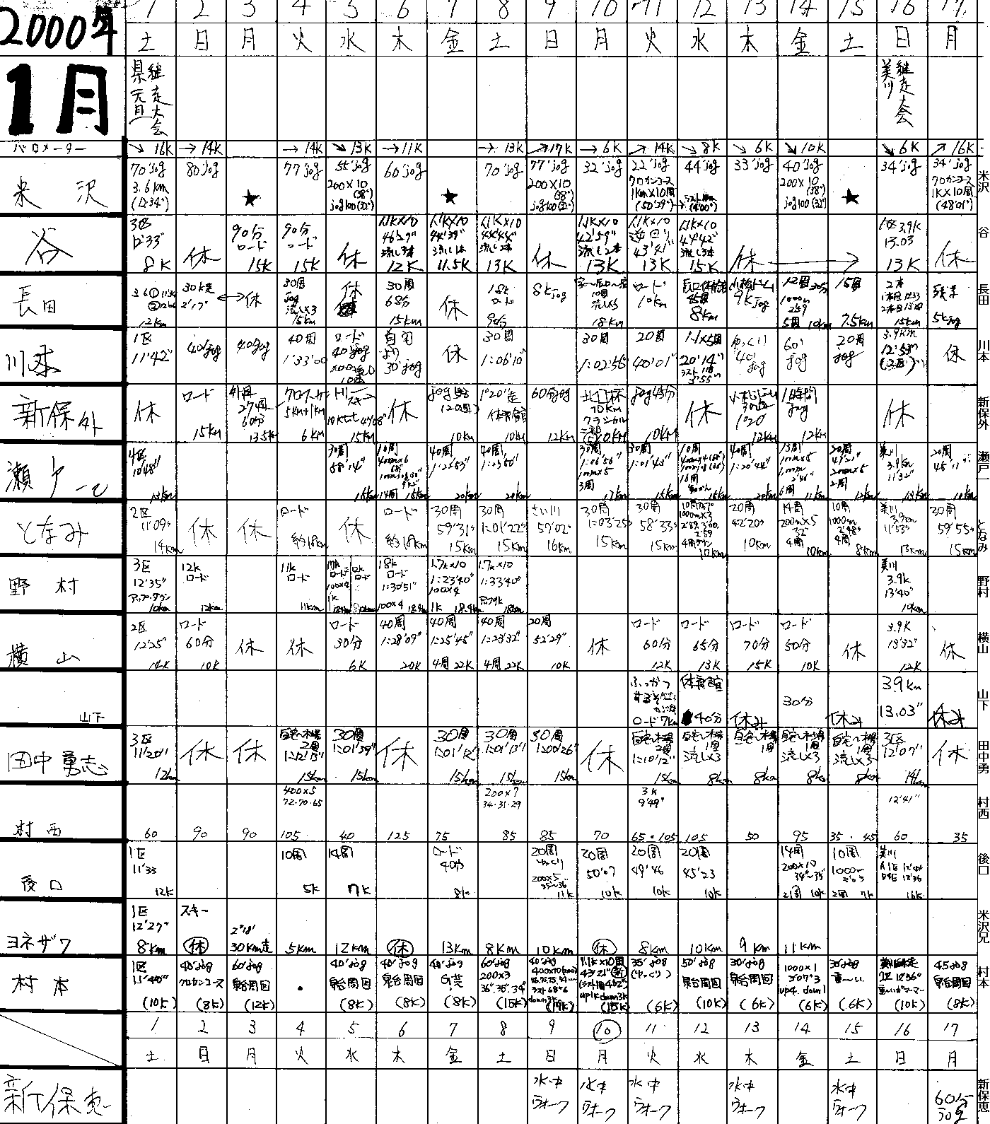 | 順位 | 選手 | 練習量 | 日平均 | 20km以上 | 備考 |