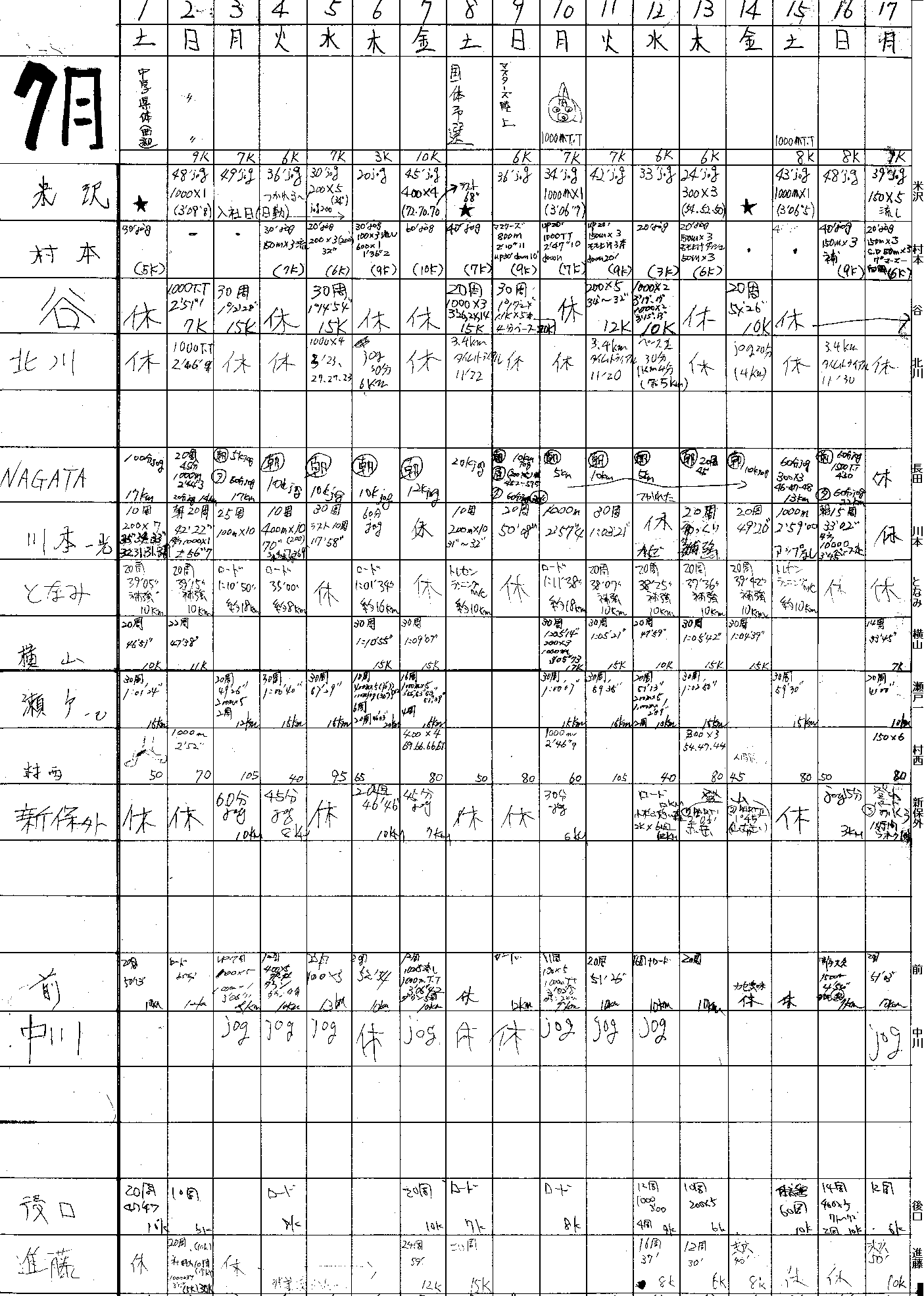 200×7 :35,34,33,32,31*3 200×10 :36(jog55) 200×10 :31-32 400×10 :70-69 | ||