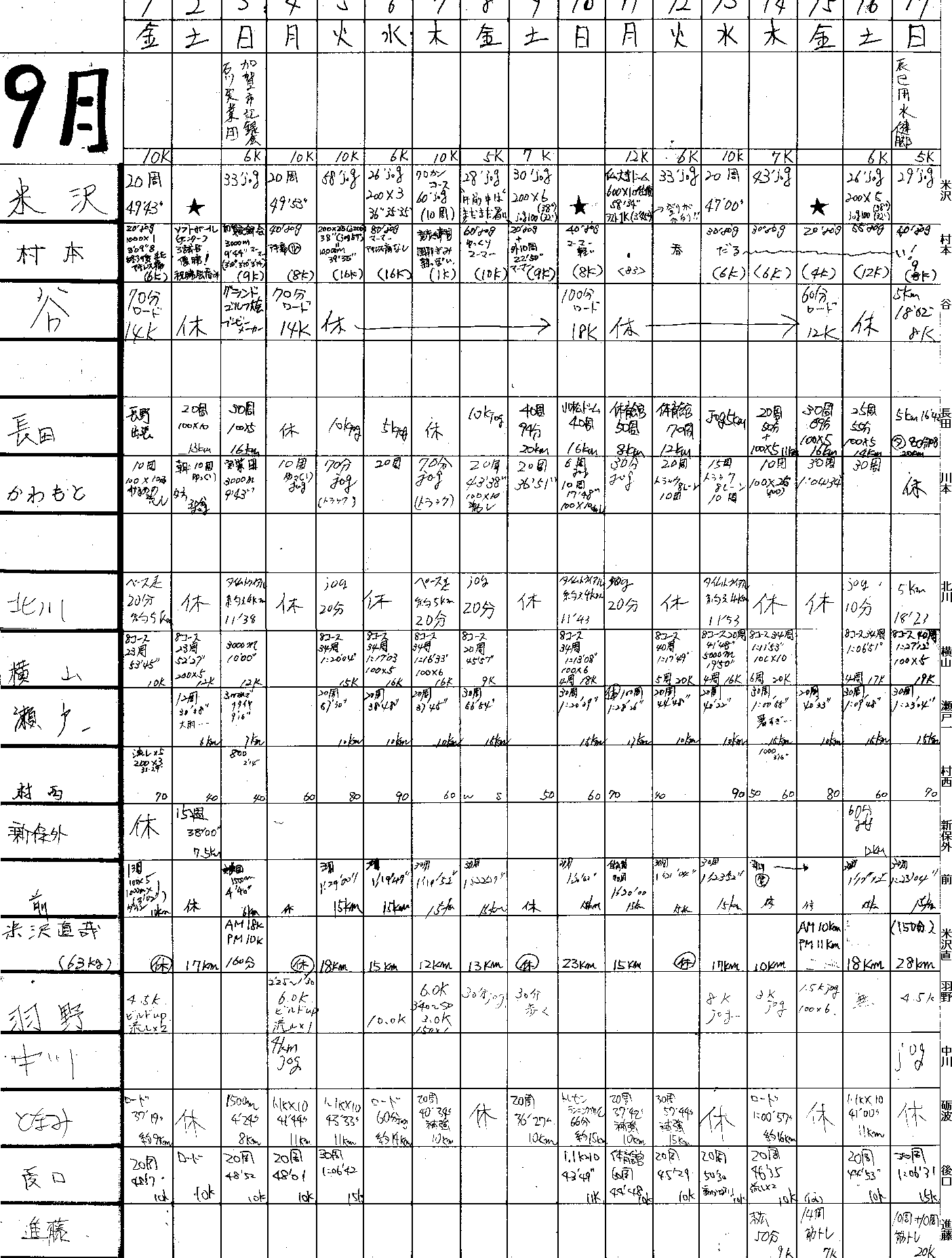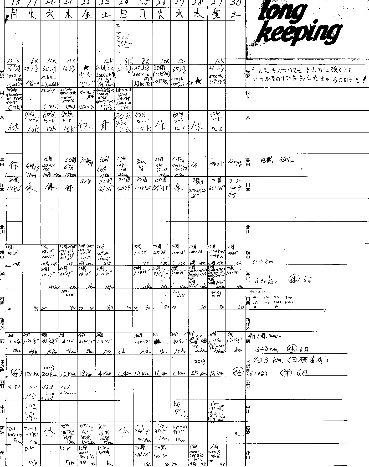 | 米沢直哉 (63kg) | 403km目標達成 62kg 休6日 |