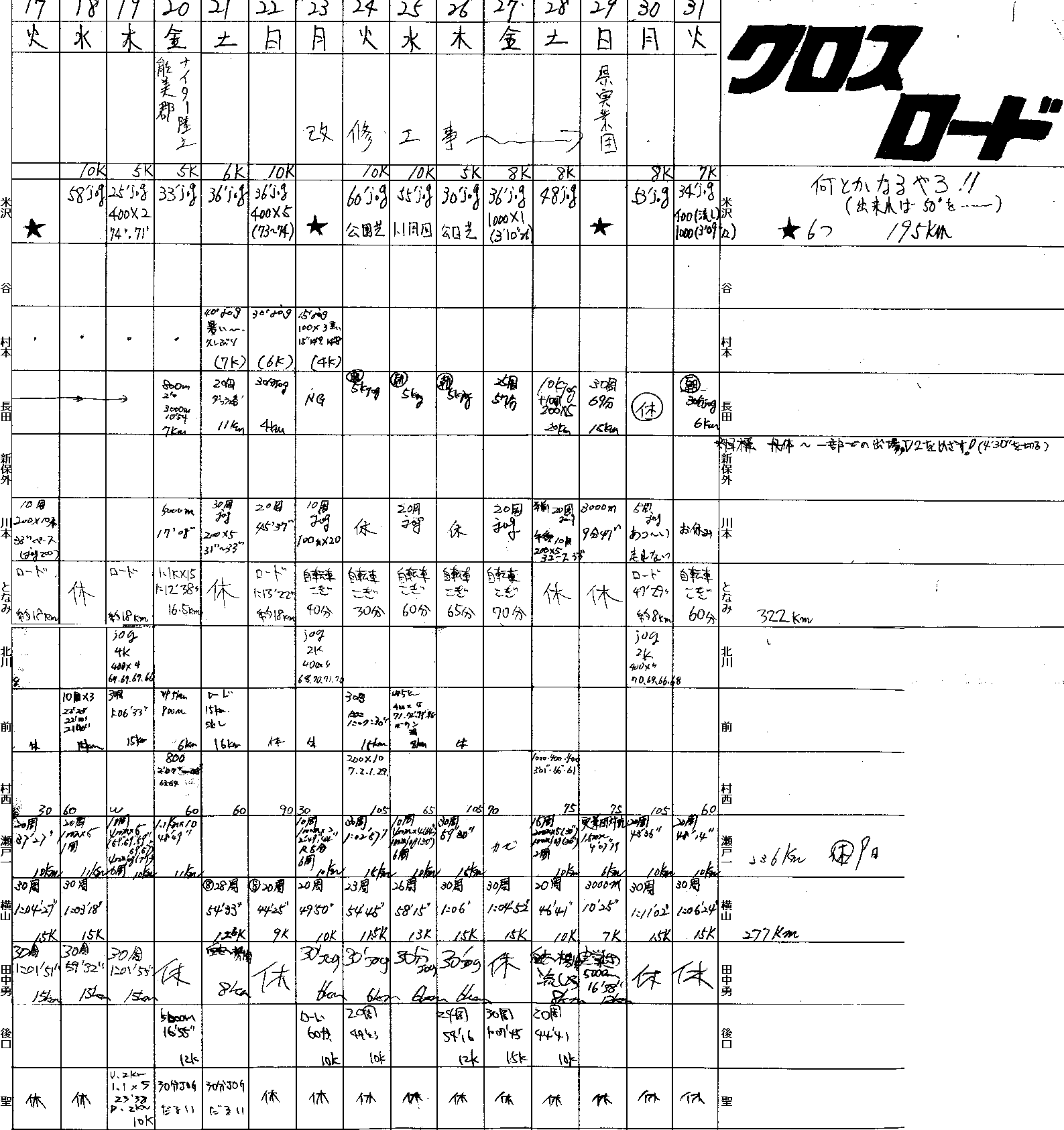 | 4 | 横山 | 277km | 9km | 0日 | 休み8日 |