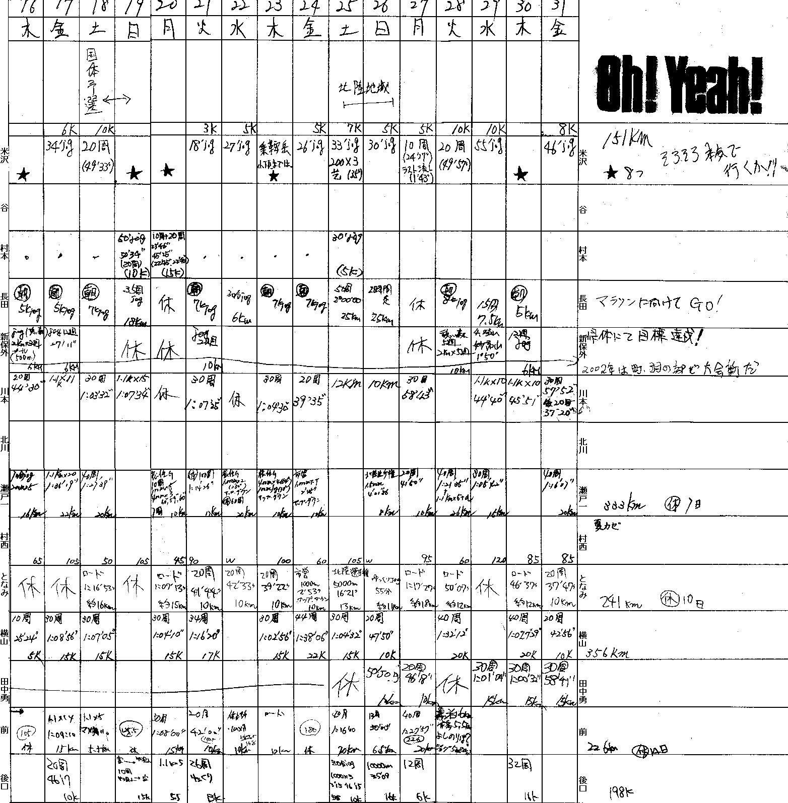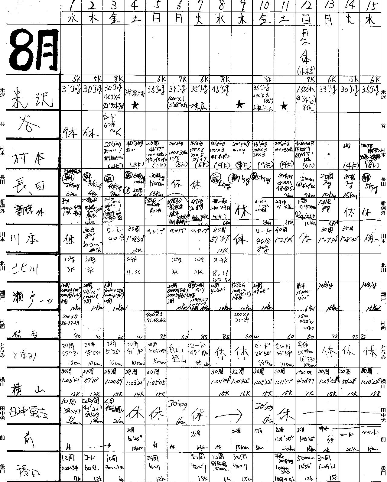 | 長田 | 1.5 4'24.87 | 300*3 48-52 | 31才になった マラソンに向けてGO! |