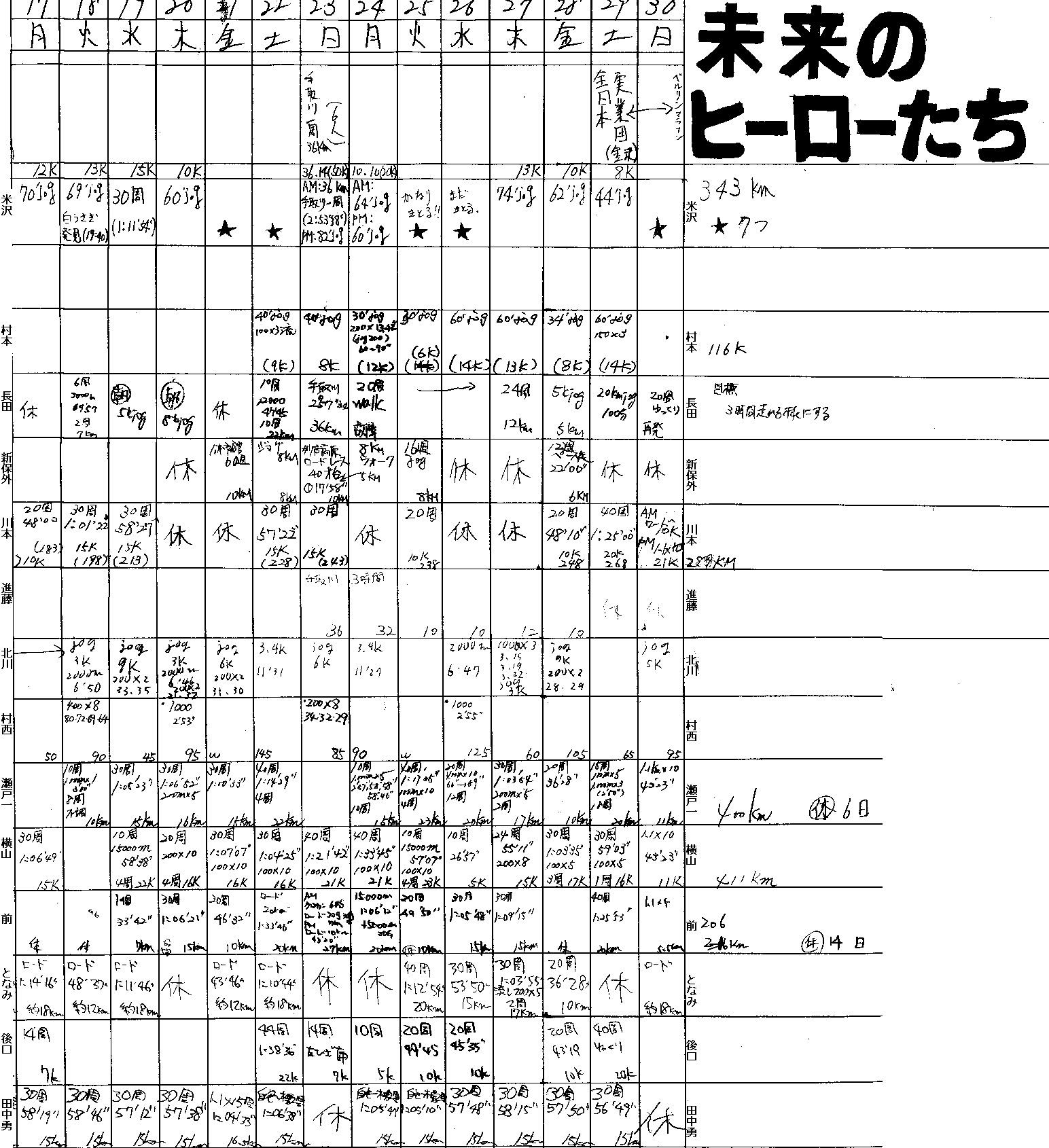 | 5 | 長田 | 361km | 12km | 9日 | 休み7日 |