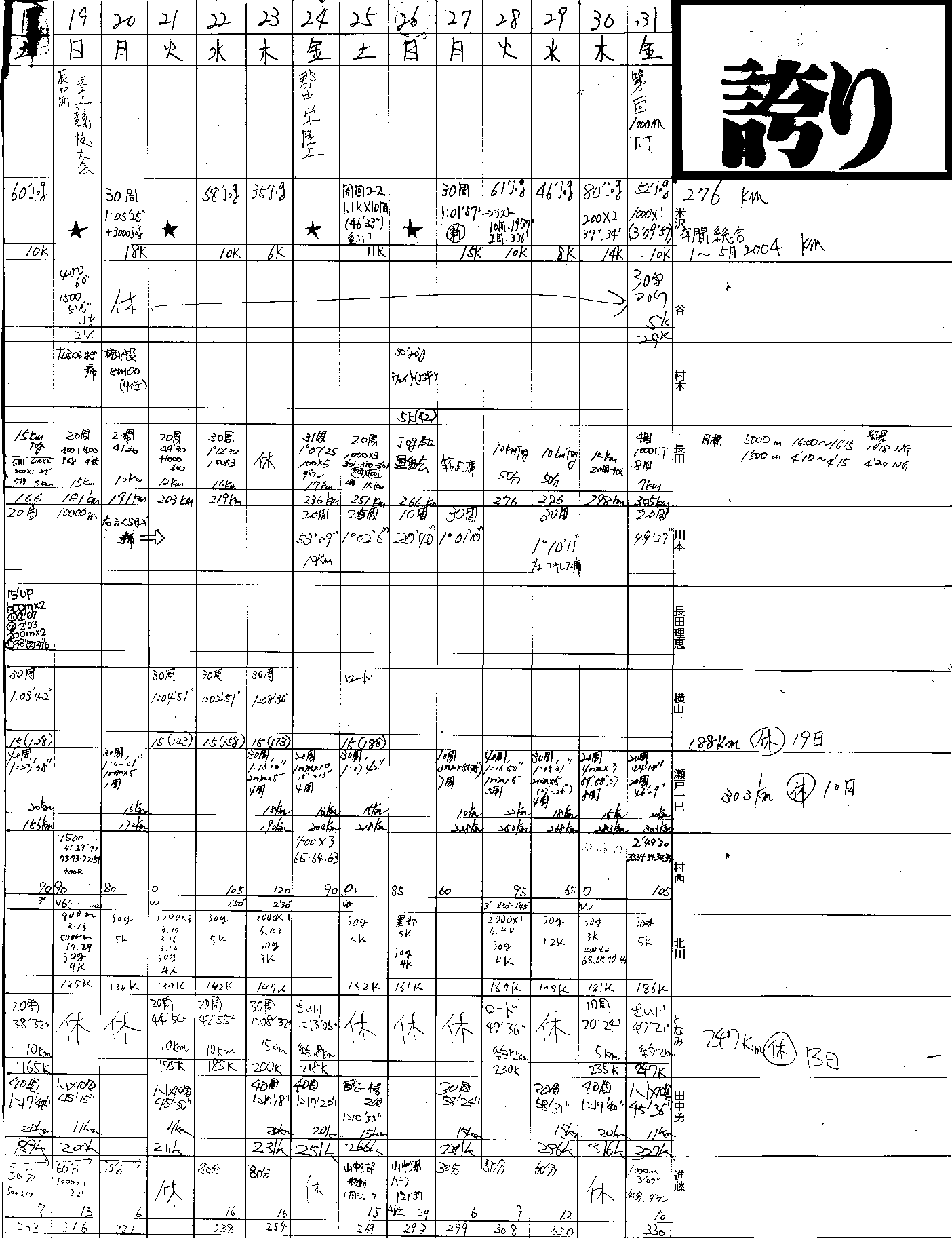 | 5 | 村西 | 2030分 | 65分 | 4日 | 距離換算406m |