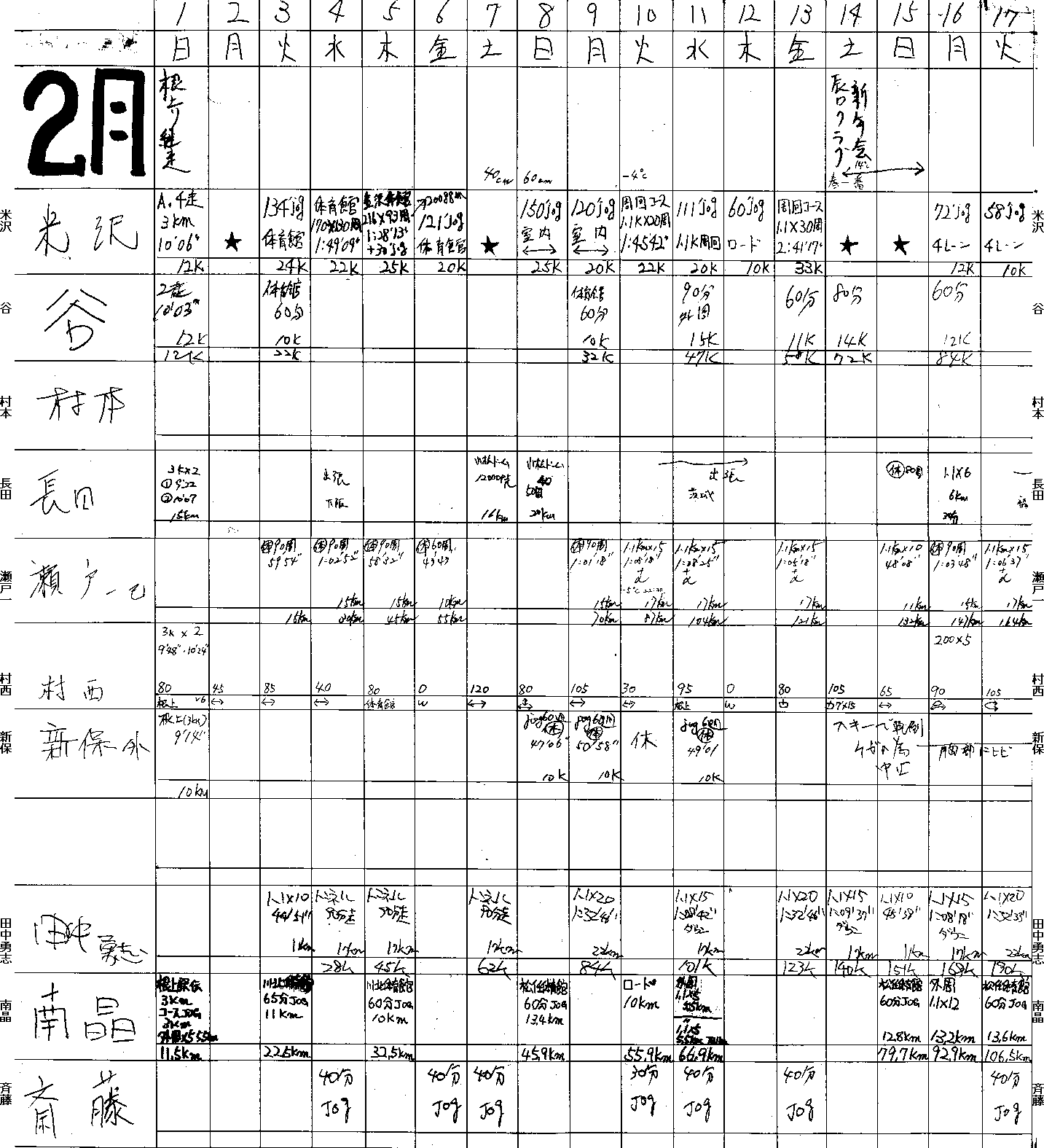 | 2 | 米沢弟 | 412km | 14km | 14日 | 休み7日 |