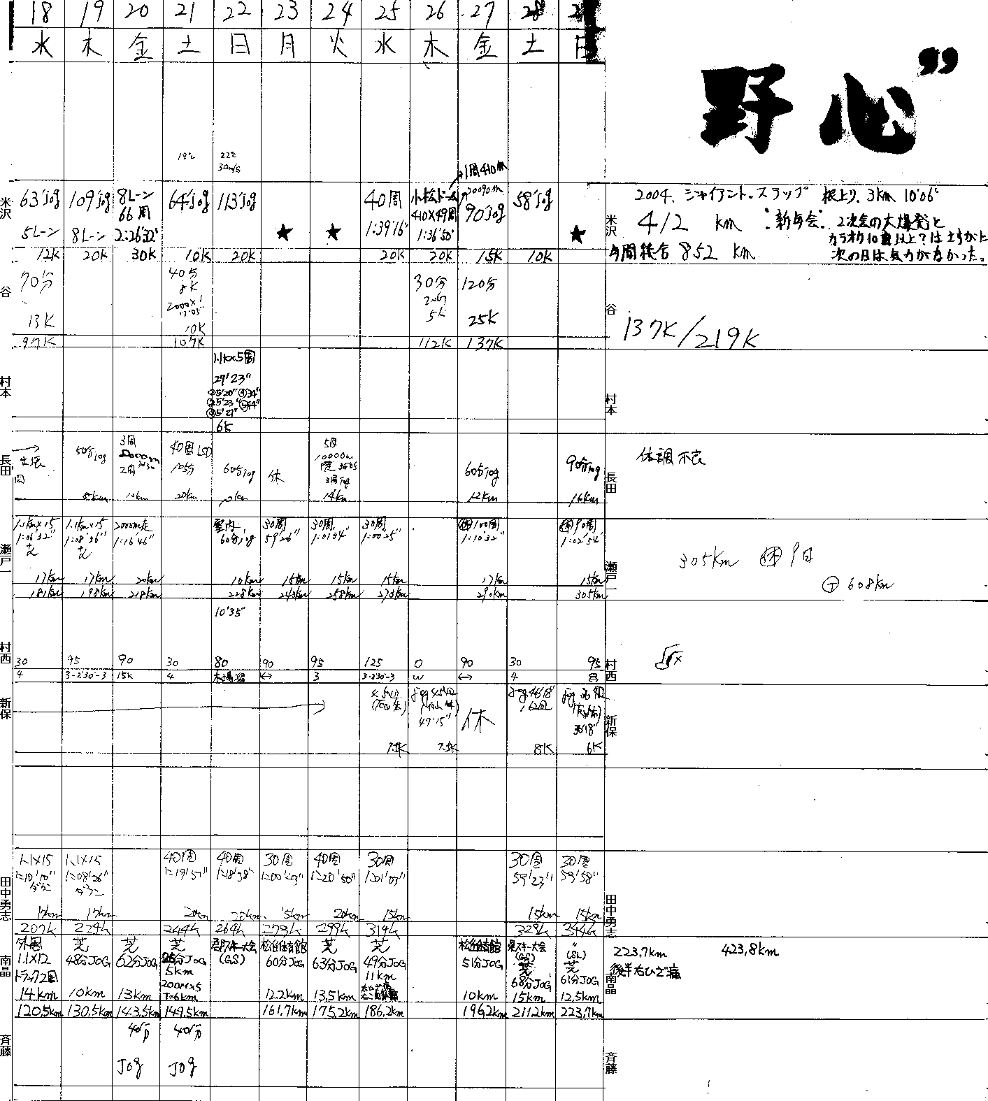 | 1 | 堂谷 | 413km | 14km | 2日 | 休み2日 |
