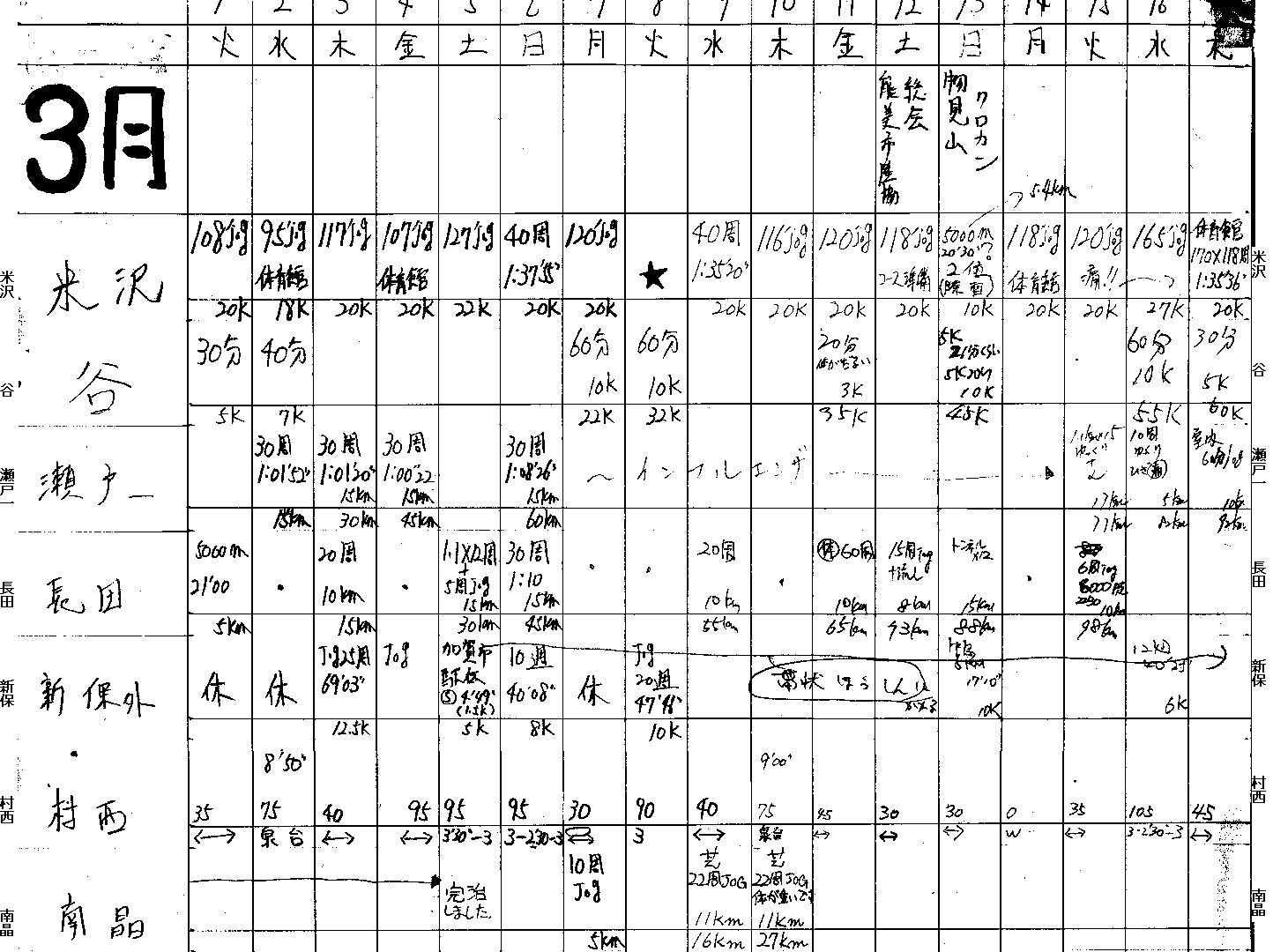 | 新保外 | 5k 1710 | 3/5〜帯状発疹になり練習にならず 中島はなんとか5連覇できるが記録悪い! |