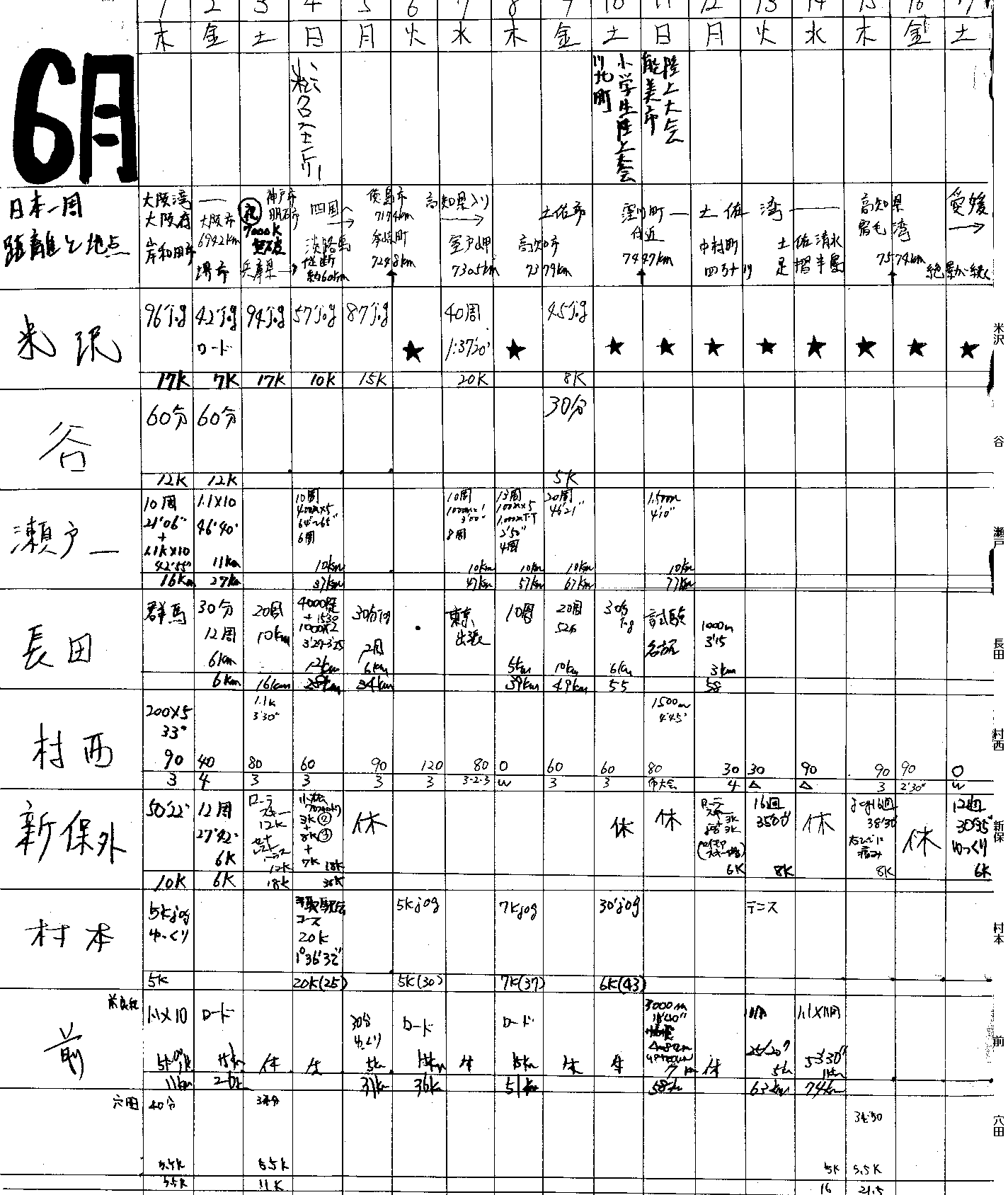 | 新保外 | 3k2位8km3位 5km16'47 | 練習不足を他のスポーツをして乗り切ろう! (故障中)登山、スキーetc 4〜6月の成果3勝2敗 |