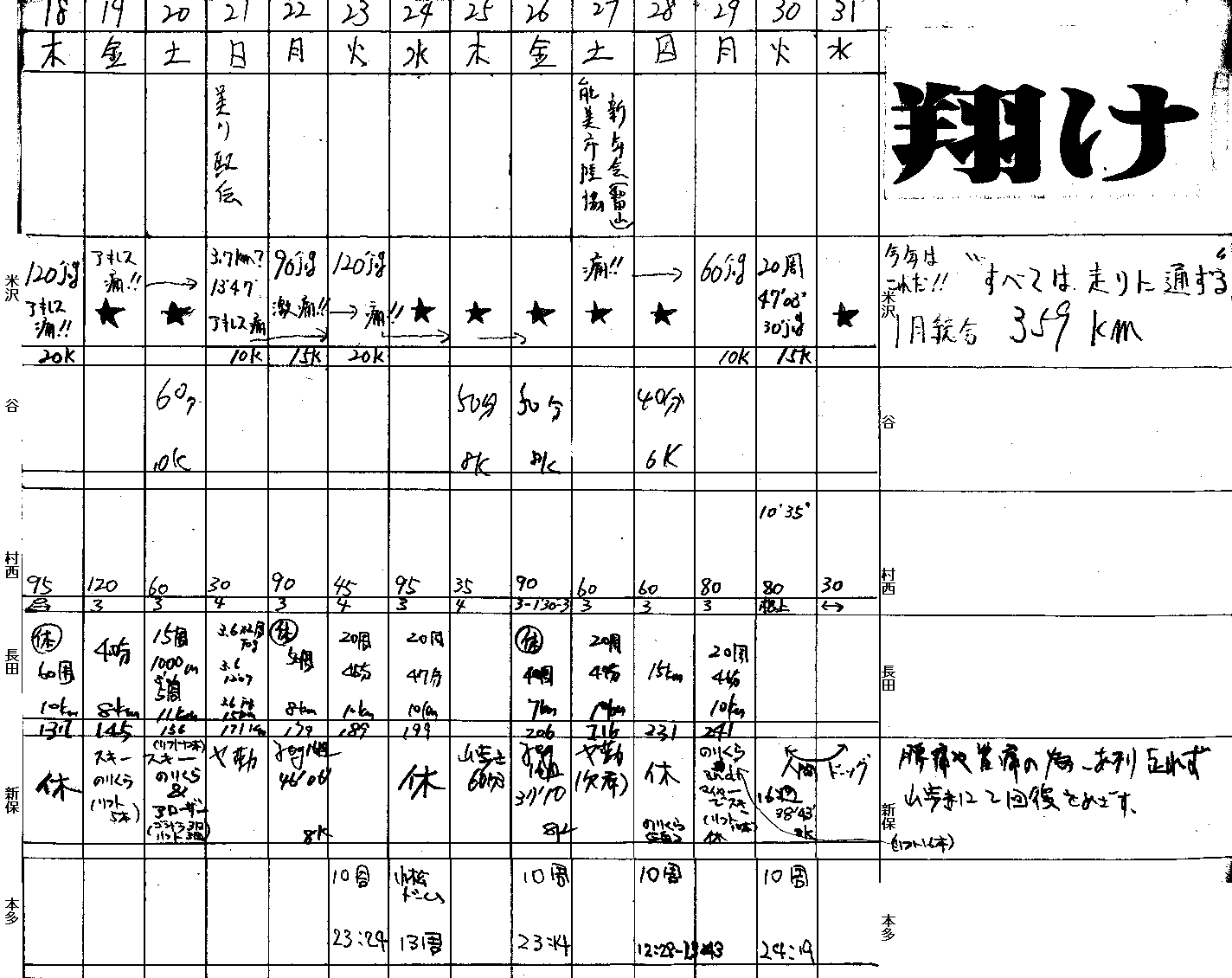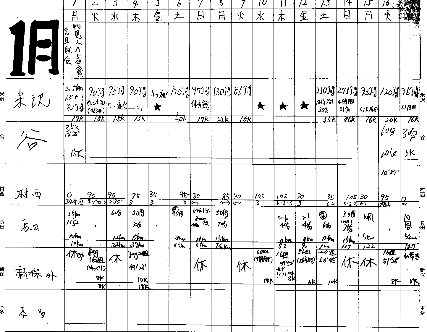 | 米沢弟 | 3.55 13'50 3.7 1347 | 今年はこれだ!! "すべて走りに通ずる" 1月 359km |