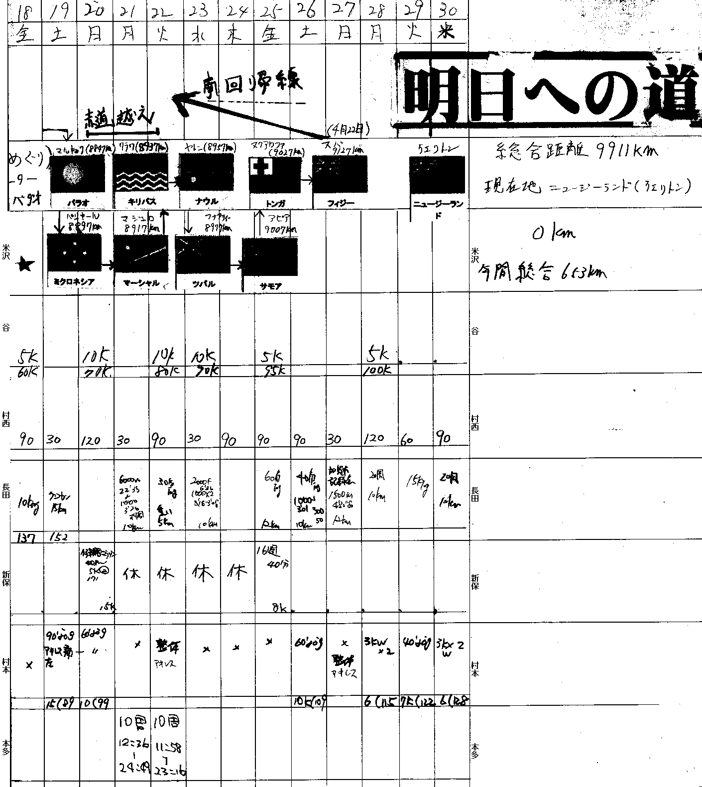 | 1 | 村西 | 2040分 | 68分 | 5日 | 距離換算408km |