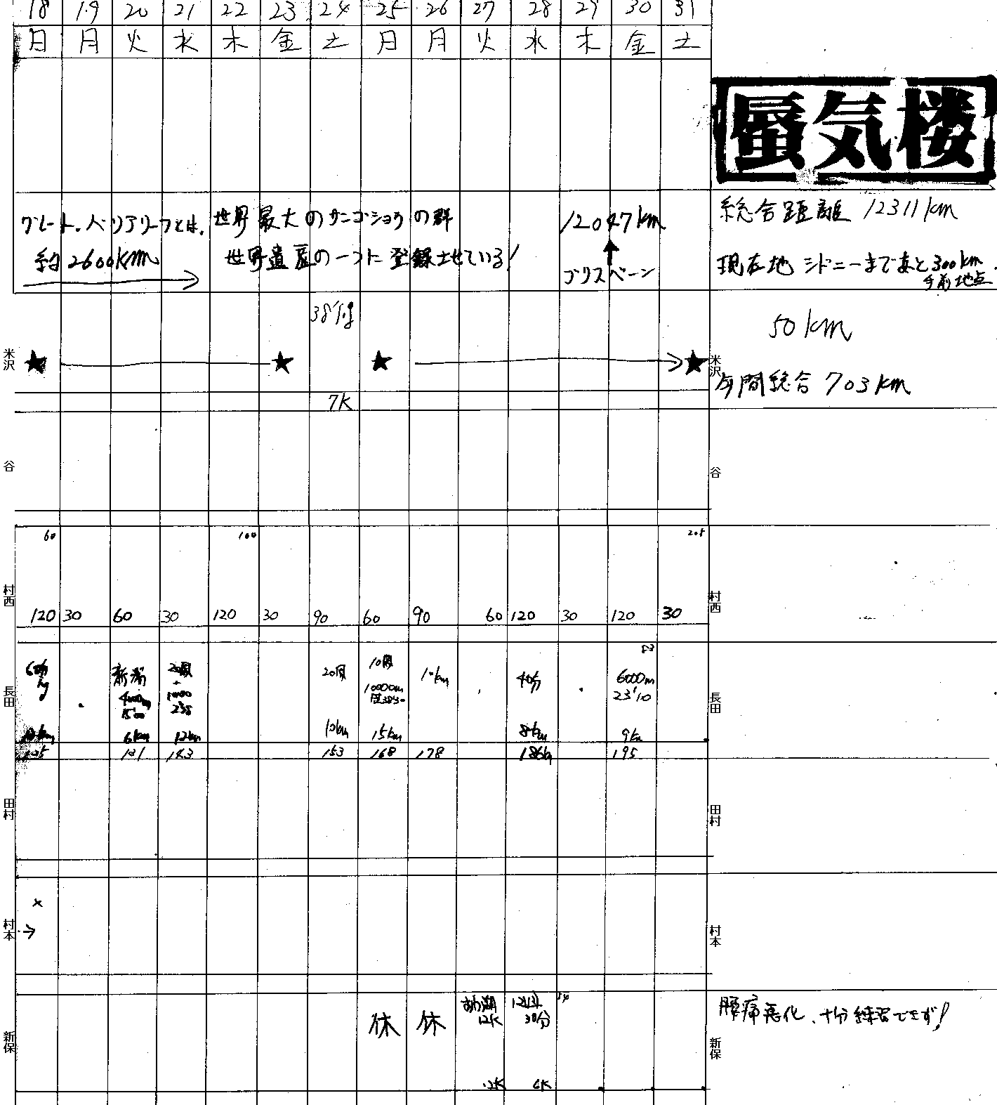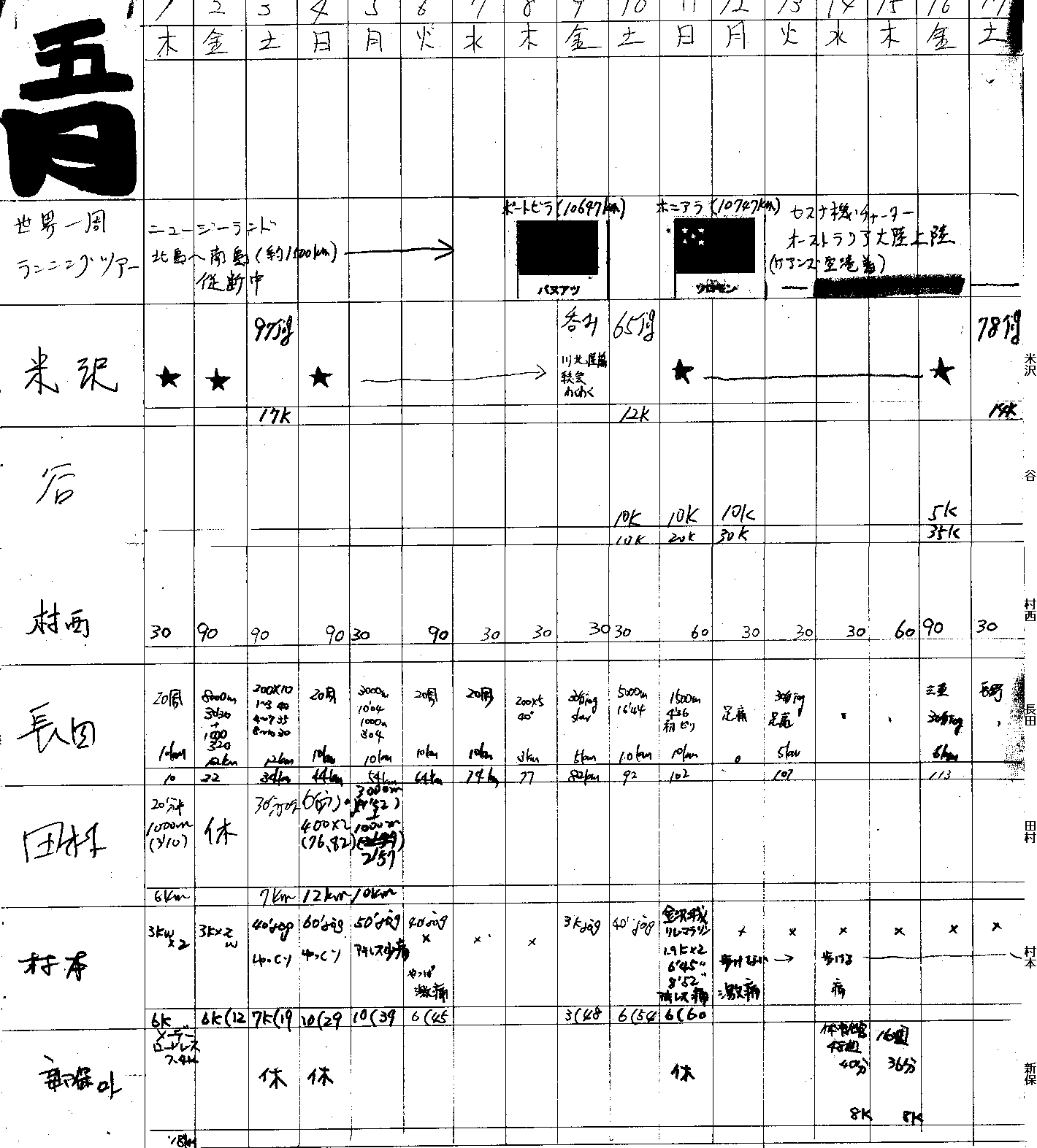 | 2 | 村西 | 1860分 | 60分 | 4日 | 距離換算372km |