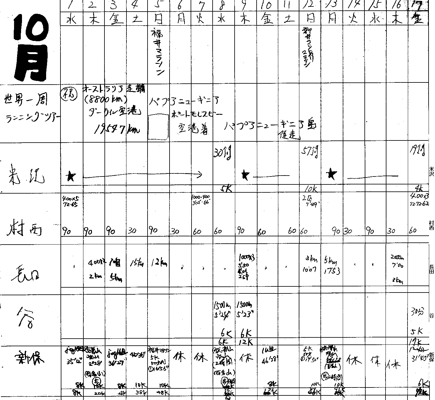 | 順位 | 選手 | 練習量 | 日平均 | 20km以上 | 備考 |