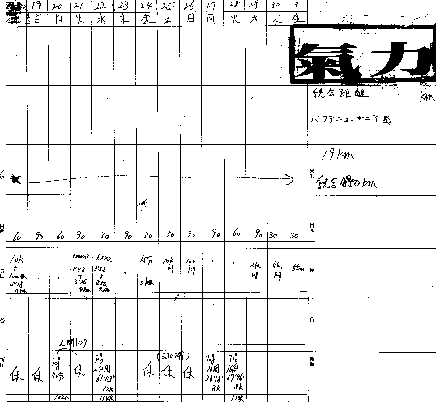 | 2 | 村西 | 1920分 | 62分 | 0日 | 距離換算384km |