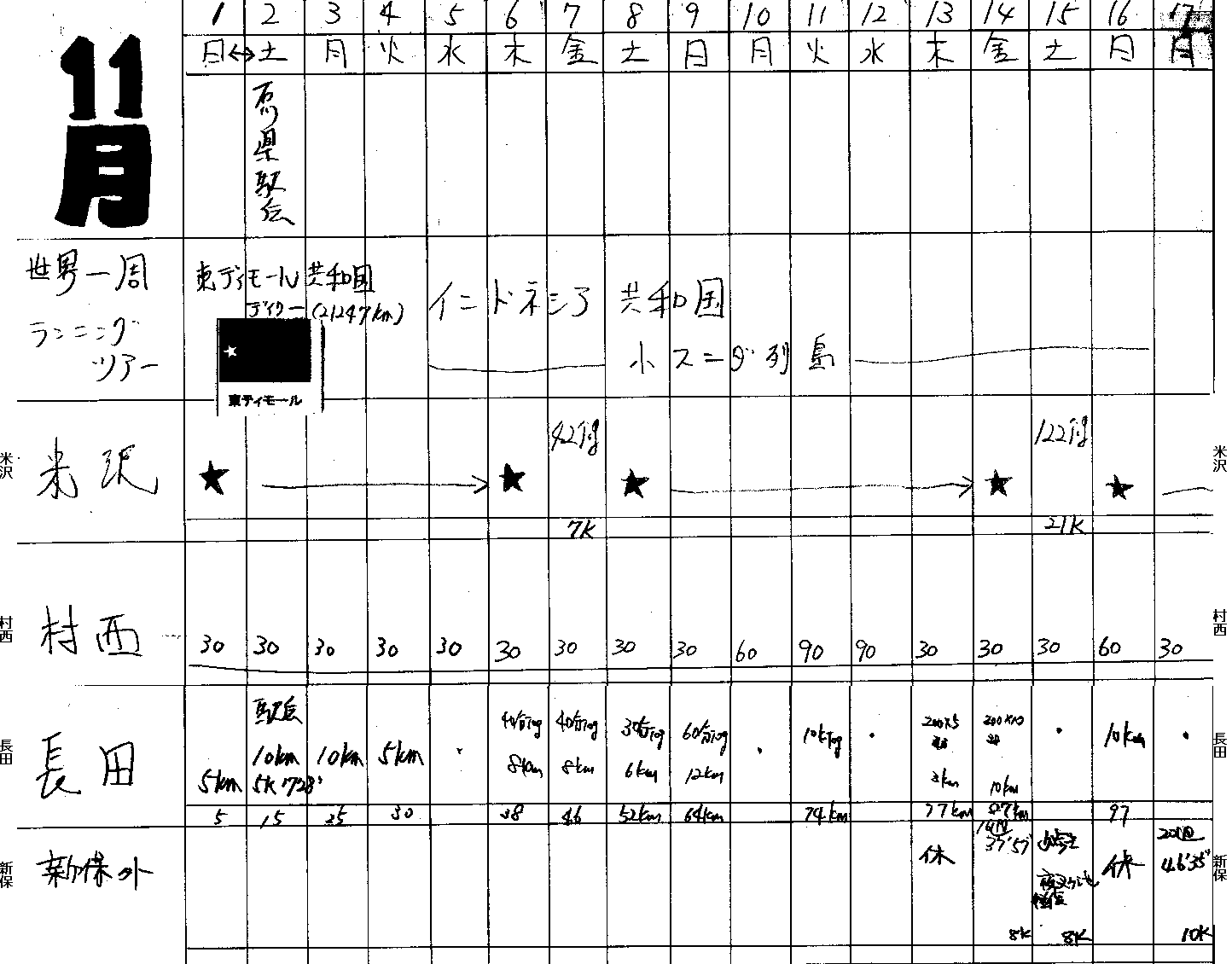 | 長田 | 5k 17'28 | 1 320 | 200*5 200*10 38 | 134km | ||