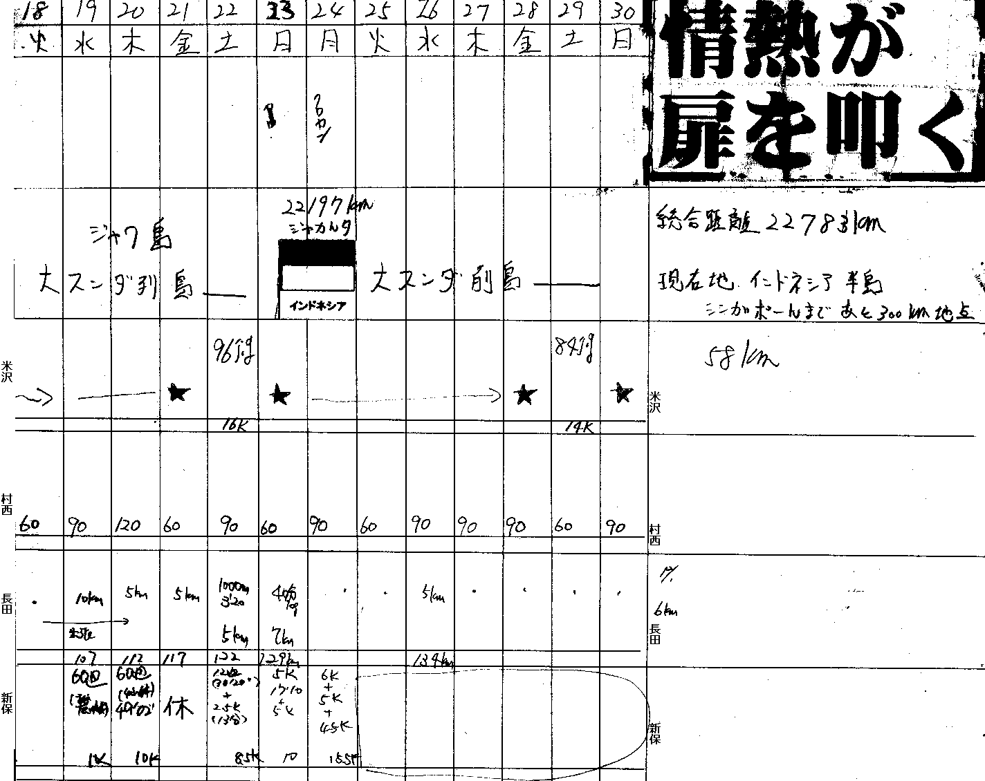 | 2 | 村西 | 1740分 | 58分 | 1日 | 距離換算348km |