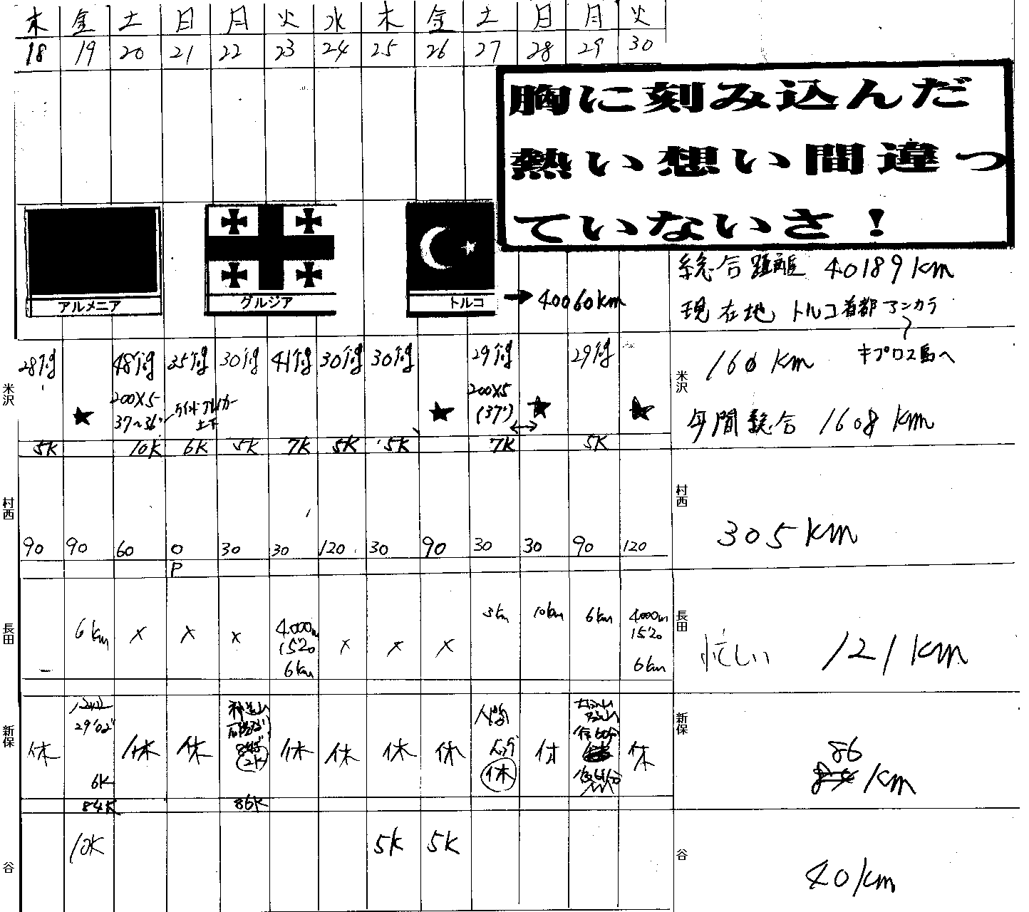| 米沢弟 | 200*3 36 200*3 36 200*3 37-36 200*5 37 200*5 37-36 200*5 37 | 160km 年間総合1608km | ||||