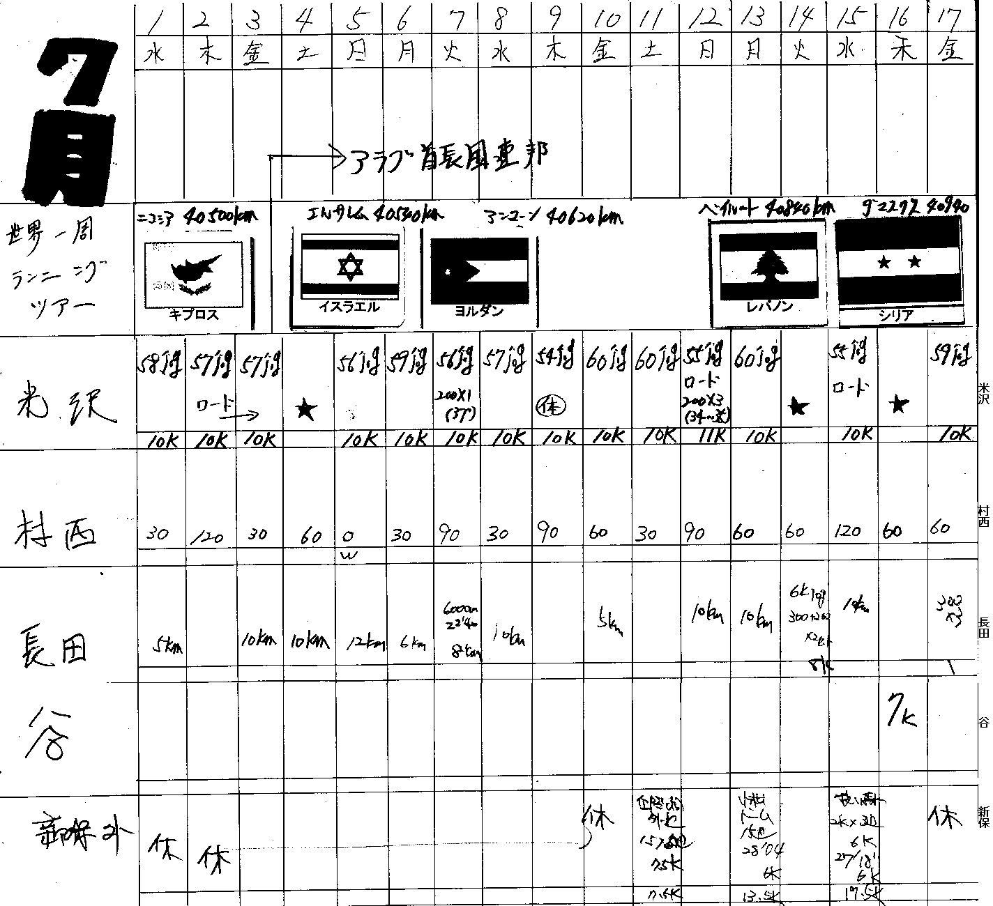 | 米沢弟 | 200*1 37 200*3 34-35 200*2 37 200*3 36 | 208km 年間総合1816km | ||||