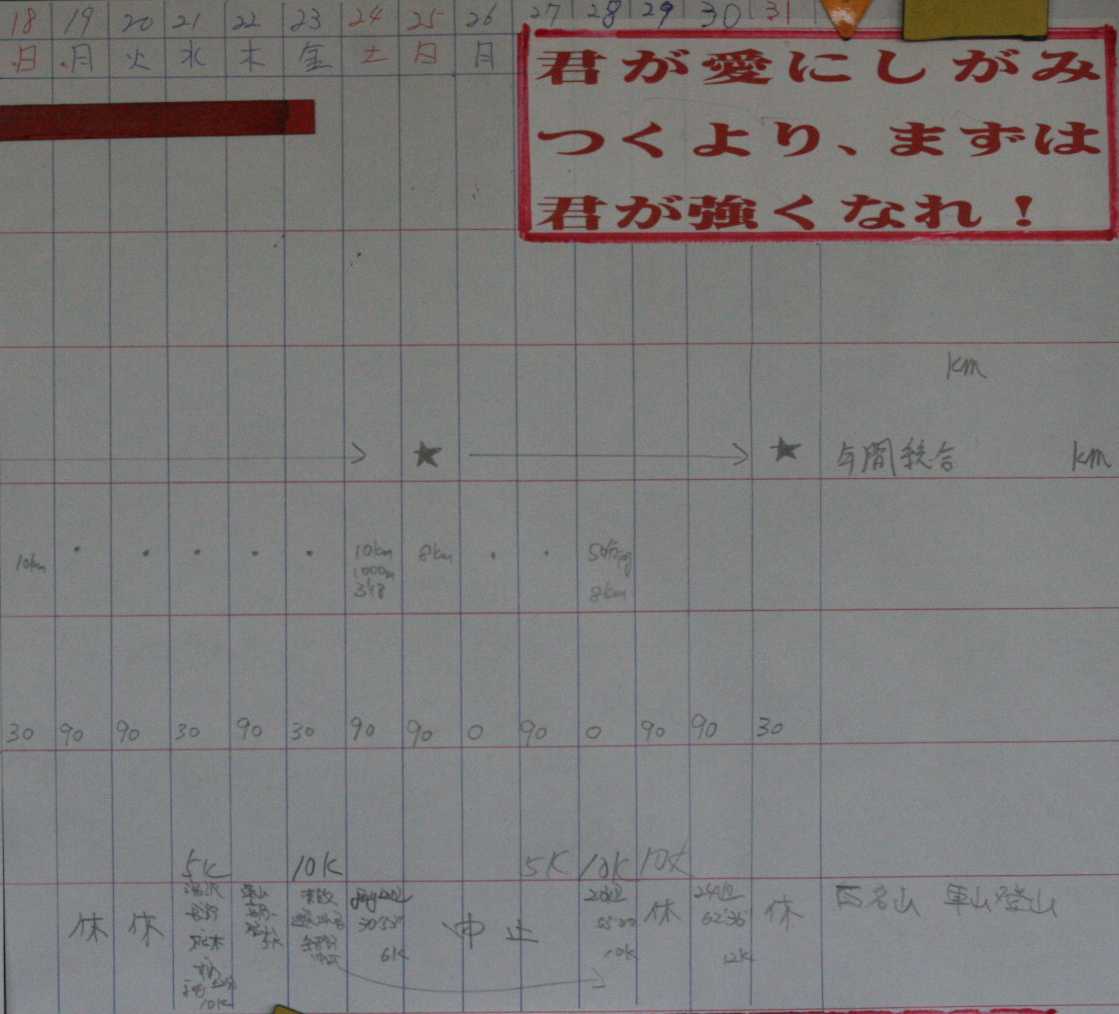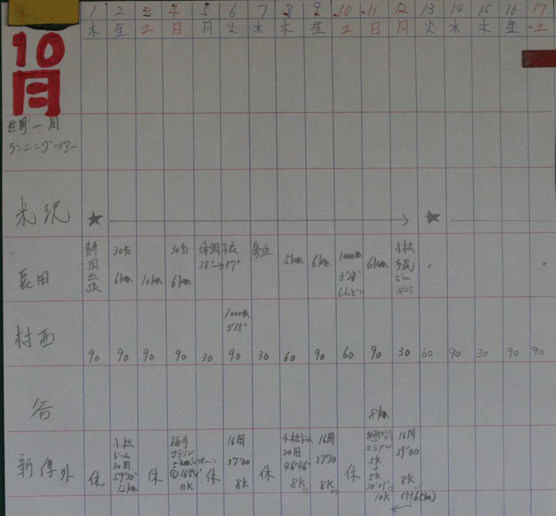 | 順位 | 選手 | 練習量 | 日平均 | 20km以上 | 備考 |