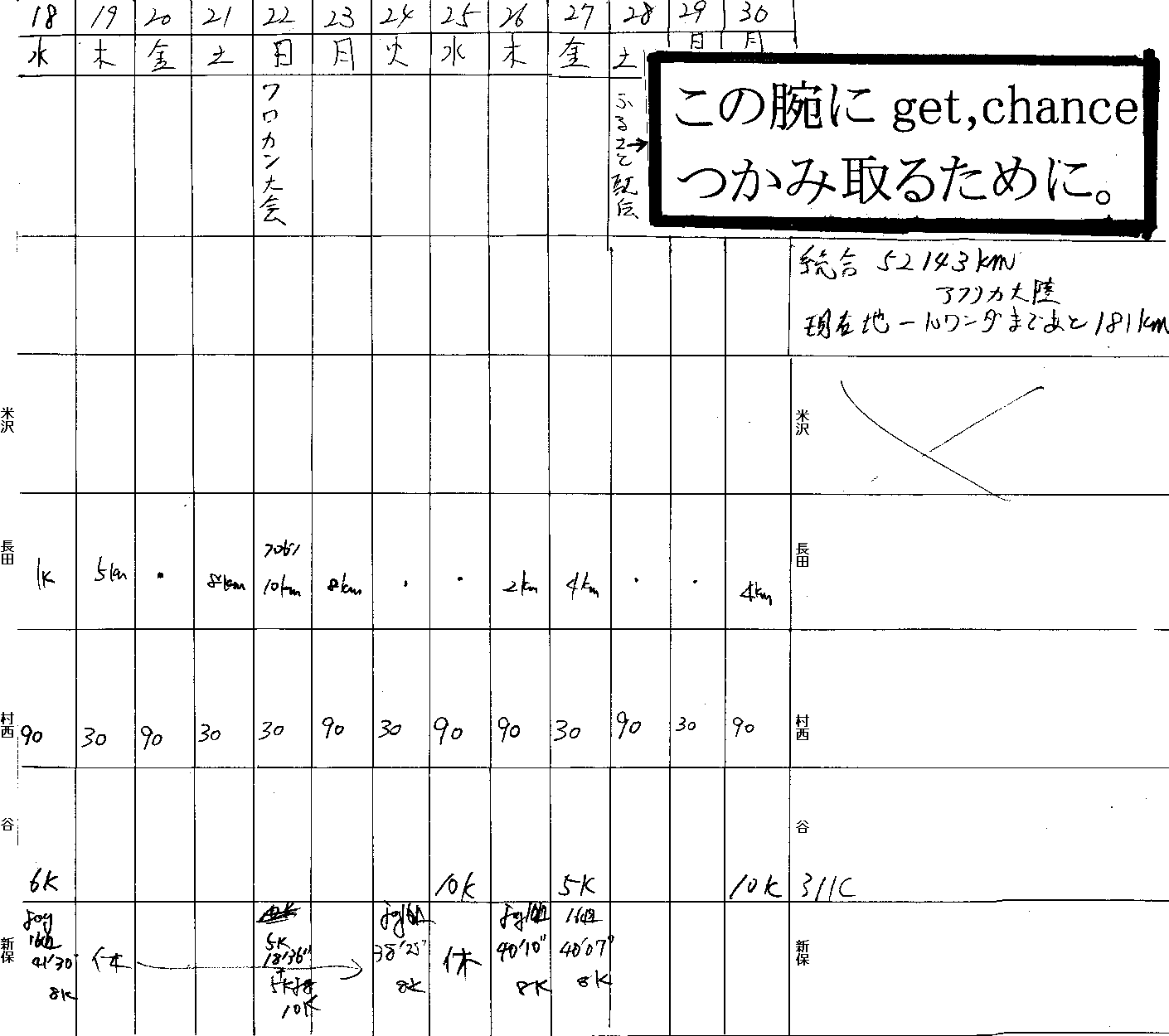 | 順位 | 選手 | 練習量 | 日平均 | 20km以上 | 備考 |