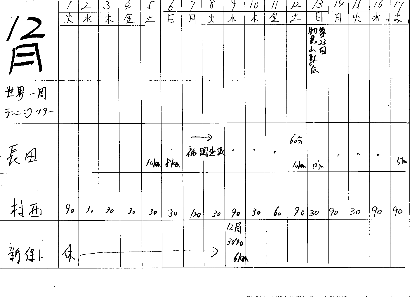 | 2 | 村西 | 1530分 | 49分 | 1日 | 距離換算225km |