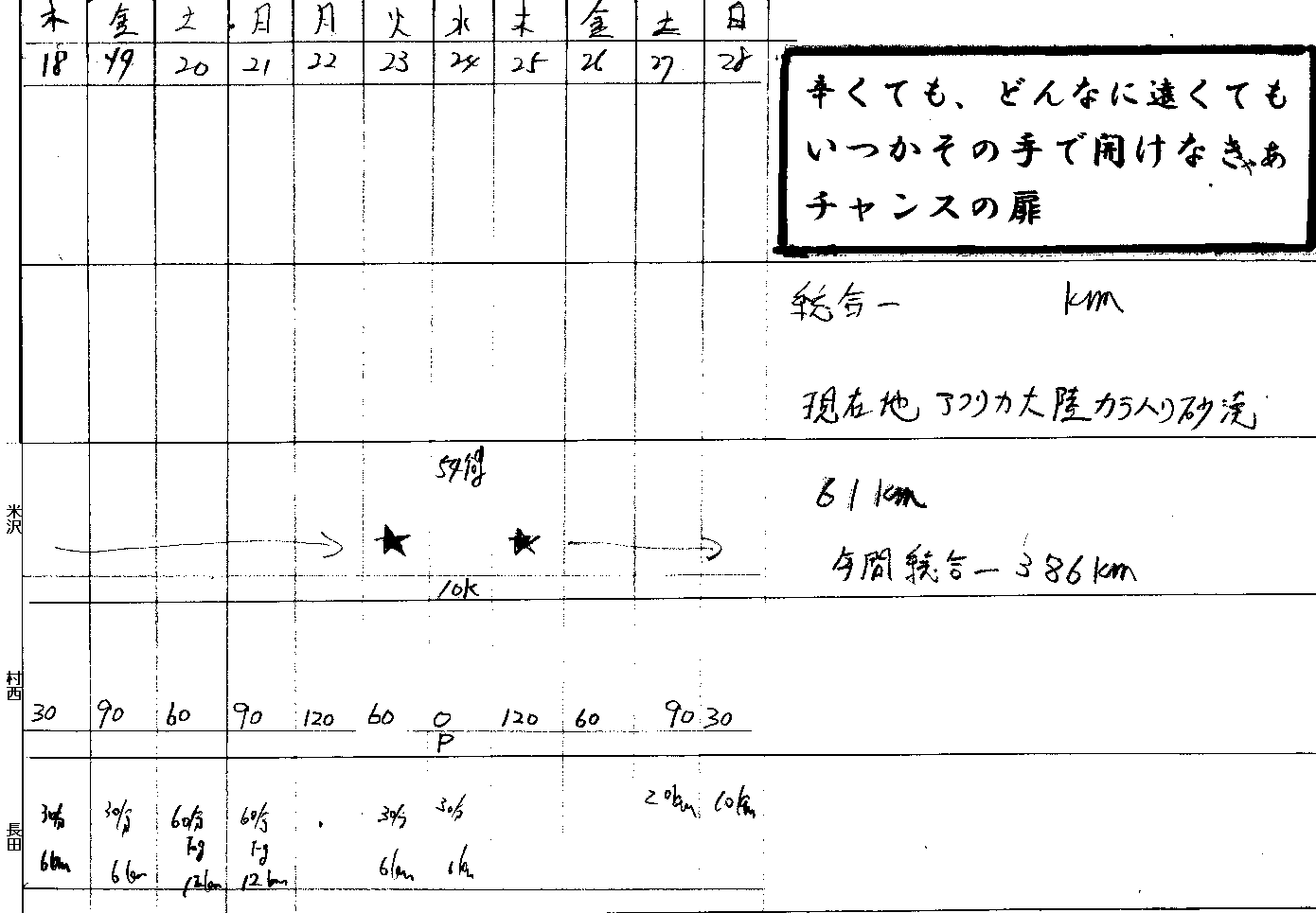 | 3 | 長田 | 180km | 6km | 1日 | |