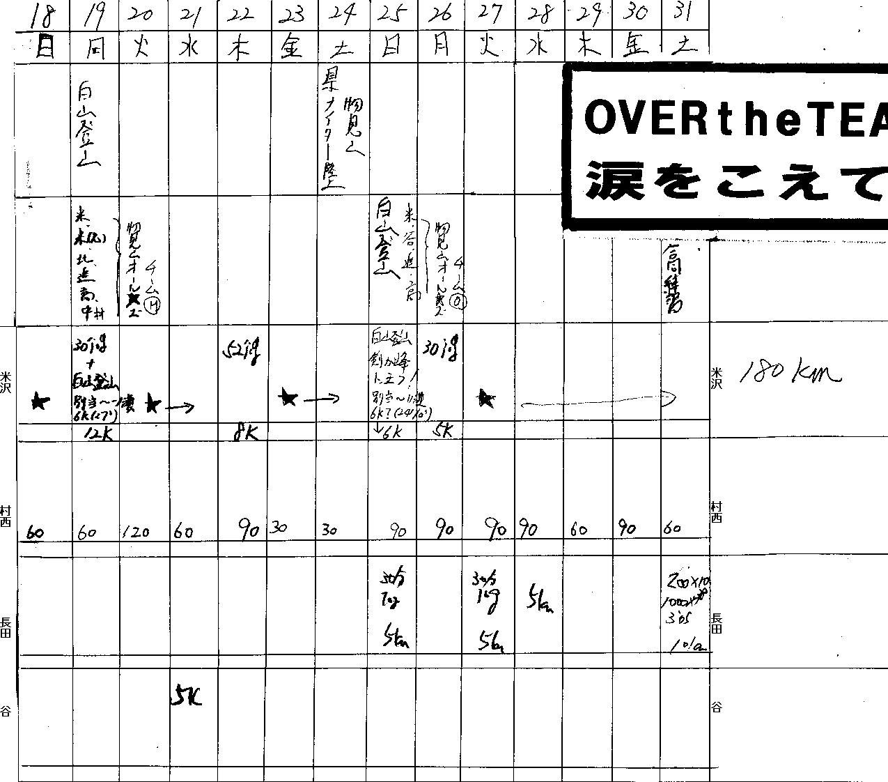 | 3 | 米沢 | 180km | 6km | 3日 | |