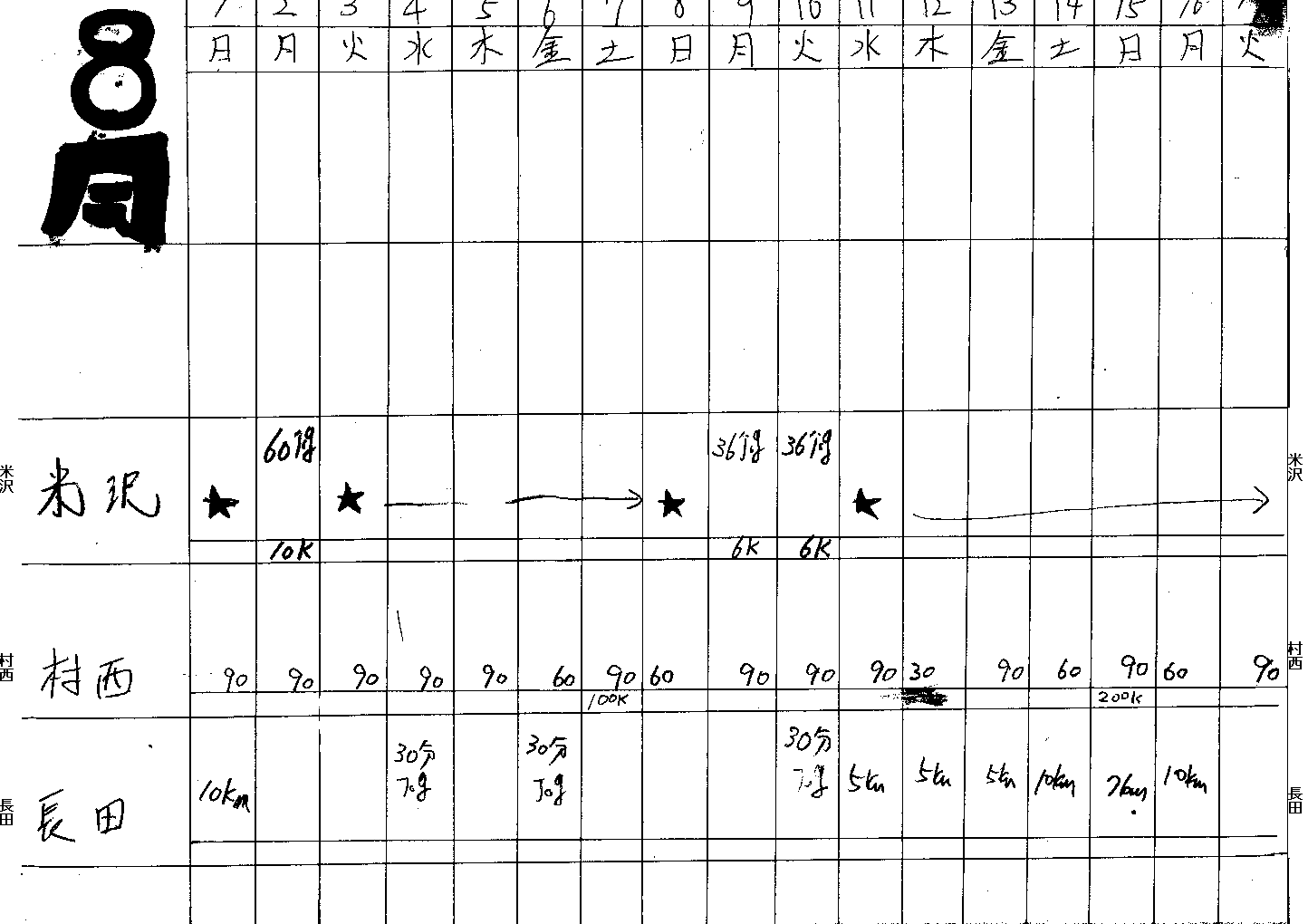 | 順位 | 選手 | 練習量 | 日平均 | 20km以上 | 備考 |