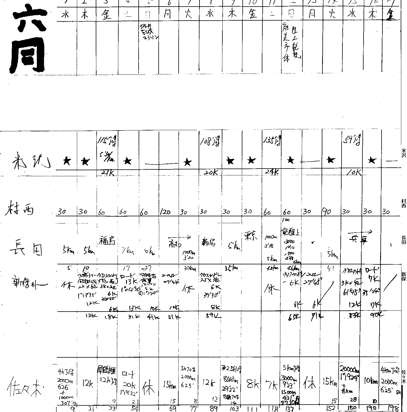| 順位 | 選手 | 練習量 | 日平均 | 20km以上 | 備考 |