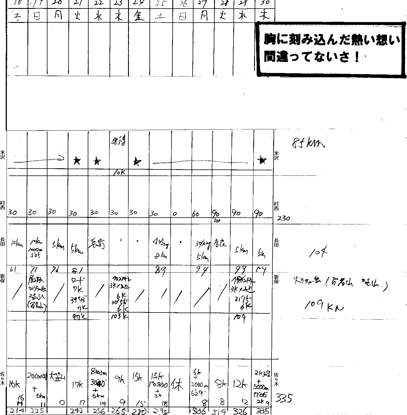 | 2 | 佐々木 | 335km | 11km | 2日 | |
