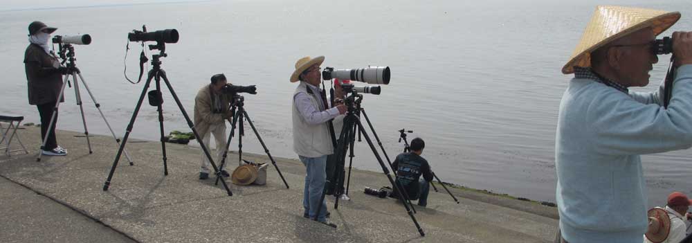 しんきろう 黒部方面 富山方面 富山方面 立ち上がったり、しゃがんだりで上と下の差が出る 黒部方面の蜃気楼を撮る人たち。 すごいカメラ、レンズを使っている。 1DVを二つ使っている人がいた。 600mmの超望遠100万円はするぞ。