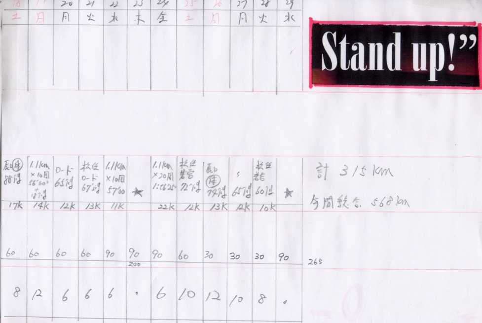 | 順位 | 選手 | 練習量 | 日平均 | 20km以上 | 備考 |