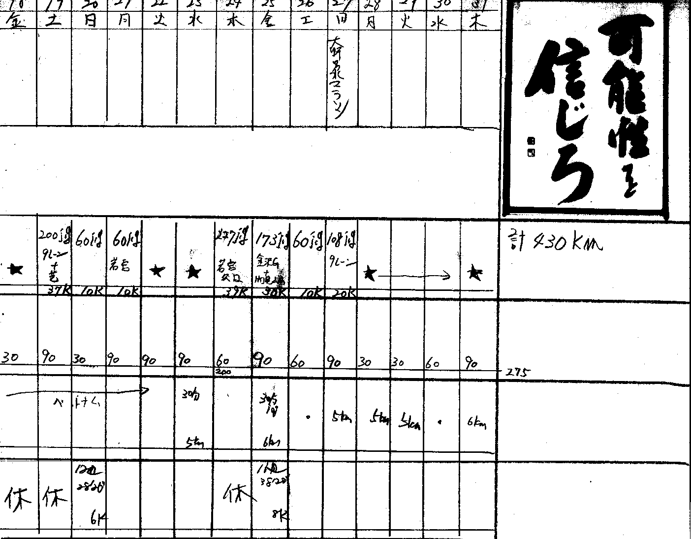 7.3km27'02(3'42) 10 36'09.86 10km36'51 | 12.6km 52'09(408) 15.75km 65'32(410) 10.29km 46'14(430) 10.5km 45'13(418) 10.5km4211(401) 10.5km 42'52(405) 15.75km 69'16(424 12.6km 56'21(428) 31.5km 2:10'44(409) 12.1km 52'08(417 10.4km42'09(403) 10.4km44'35(417) 8.7km41'37(447) 10.4km47'41(435) 10.4km43'59(414) |