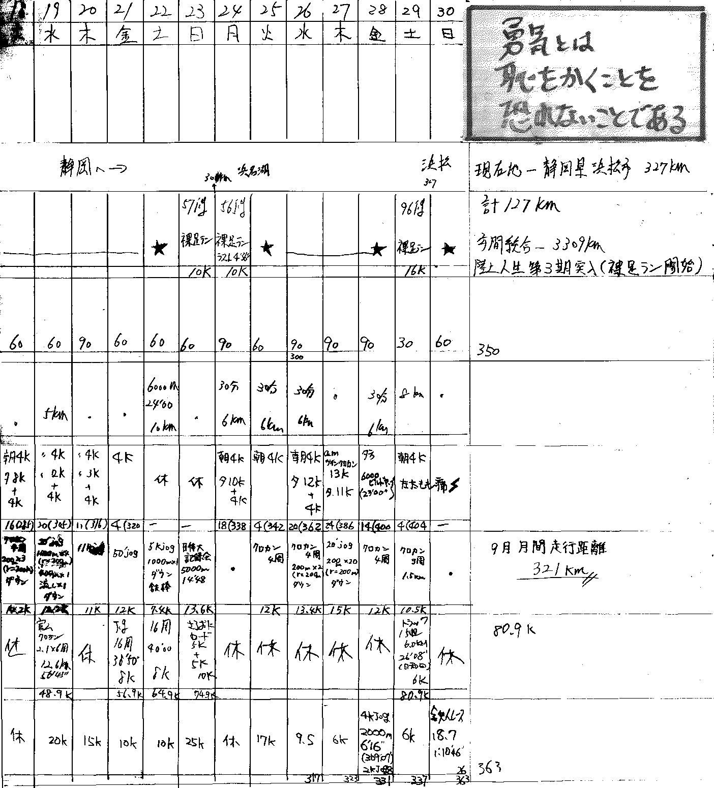 | 3 | 佐々木 | 363km | 12km | 3日 | 休み4日 |