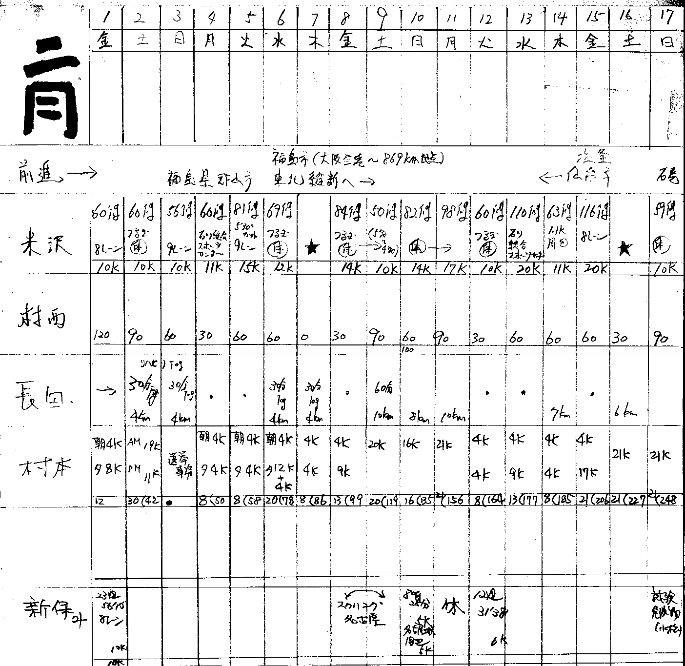 | 3 | 米沢 | 335km | 12km | 4日 | |