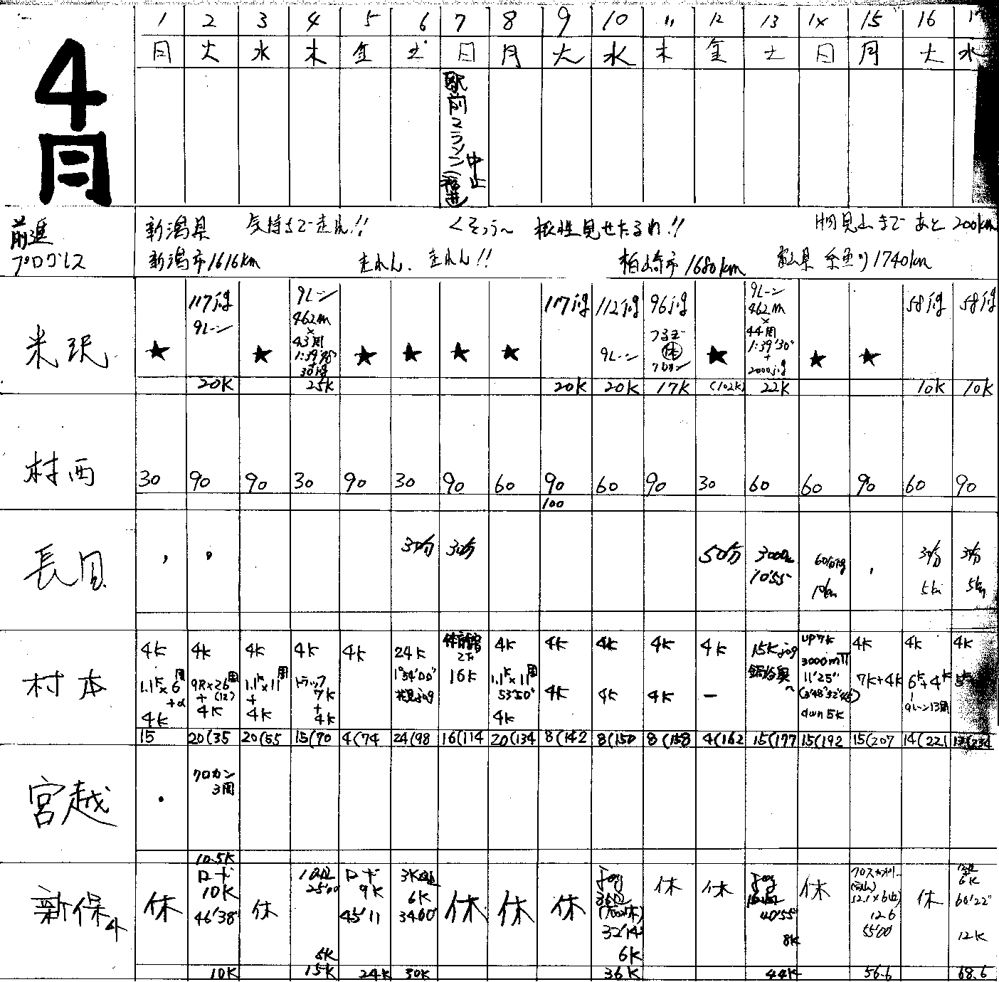 | 米沢弟 | 19.86 13948 20.33 13930 20.33 14100 | 236km | ||||