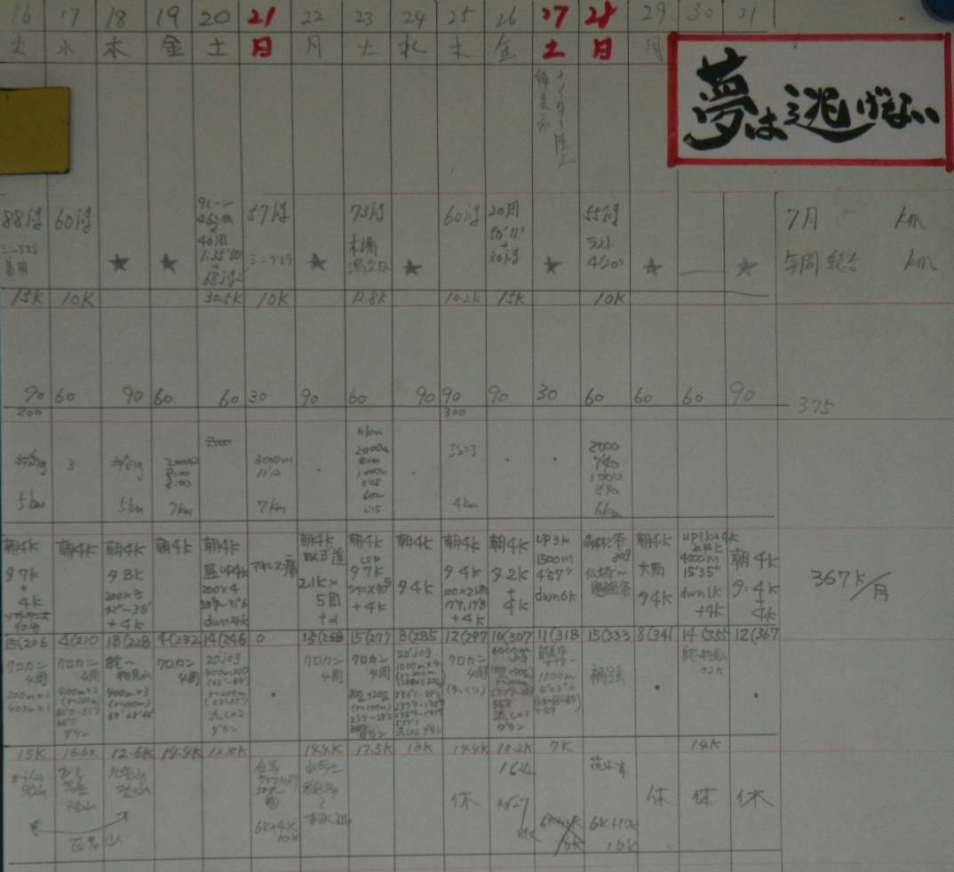 | 堂谷 | 5000m18'00.74 | 8.62km38'31(4'28) 10.8km48'20(4'29) 12.94km56'23(4'21) 17.02km79'31(4'40) 20.8km95'54(4'37) 10.4km46'23(4'28) 15.6km65'42(4'13) 10.4km46'50(4'30) 20.8km88'44(4'16) 5.2km23'58(4'37) 20.8km97'52(4'42) 20.8km97'07(4'40) 11.44km48'53(4'16) 13.52km61'00(4'31) 10.4km45'59(4'25) 20.8km97'09(4'40) 20.8km86'57(4'11) 6.24km28'38(4'35) 8.32km35'34(4'16) 8.32km37'16(4'29) 20.8km92'56(4'28) |