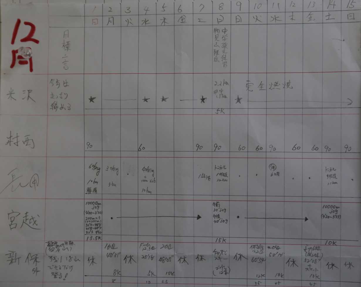 | 順位 | 選手 | 練習量 | 日平均 | 20km以上 | 備考 |