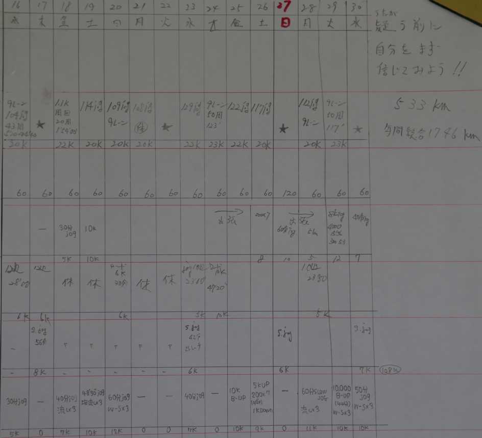 5k 18'37 27'07 | 10 49分 | 3 10'40 | 200*10 40" +400*3 76" 200*20 | 2 7'51 +1 3'35 | |