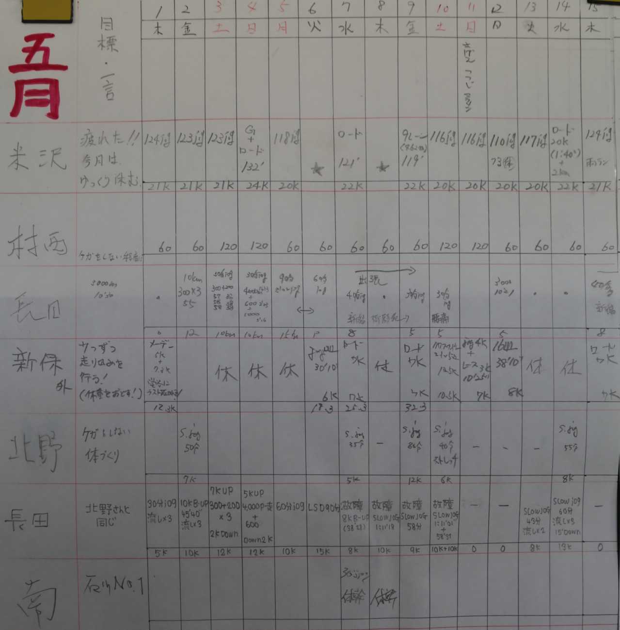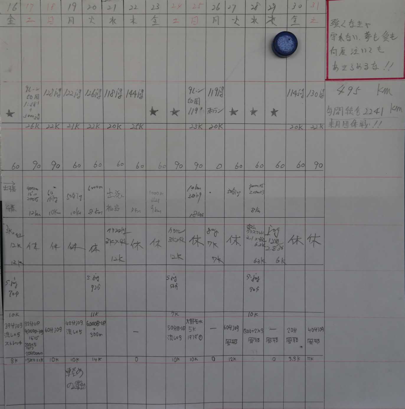 | 順位 | 選手 | 練習量 | 日平均 | 20km以上 | 備考 |
